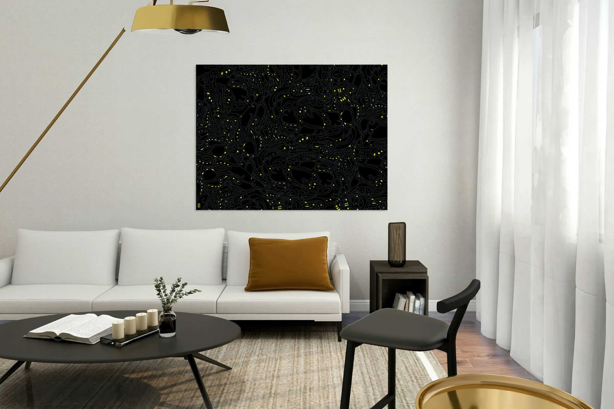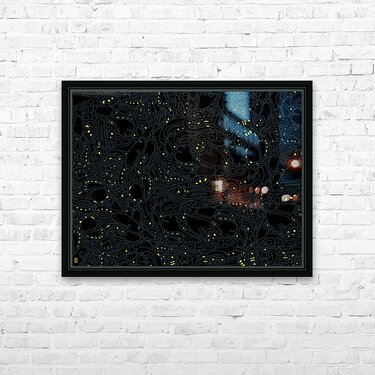 Fireflies, is a series with 7 unique color studies variations. Fireflies in 3 Yellow (Full), has a Limited Edition Prints of 250